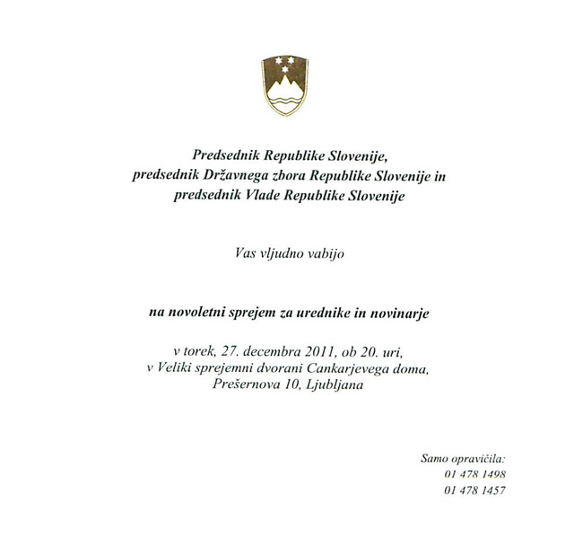 Protokolarno vabilo na današnji sprejem. Diskretno, brez imen.
