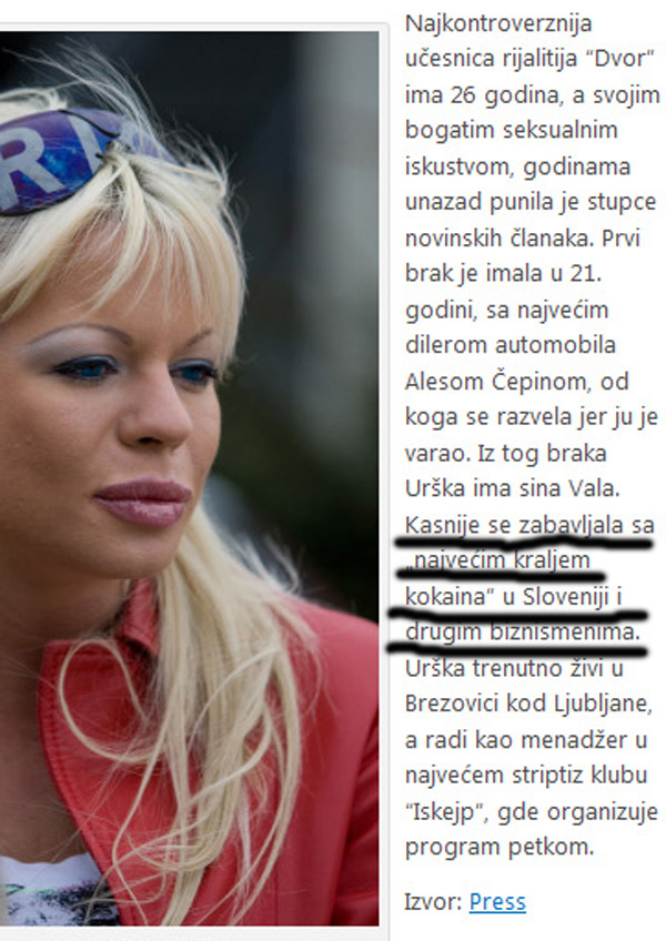 ... in pišejo, kako se je starleta zabavala z največjim kraljem kokaina v Sloveniji (za povečavo klikni na sliko).