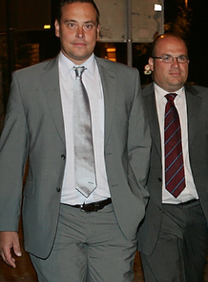 Tako sta bankirja Andrej Potočnik in Urban Golob 25. avgusta 2009 prišla na zabavo združenja Yes v vilo Barjanka. Mesec dni kasneje je Miro Senica vilo prodal Hypo banki. (foto: Finance)