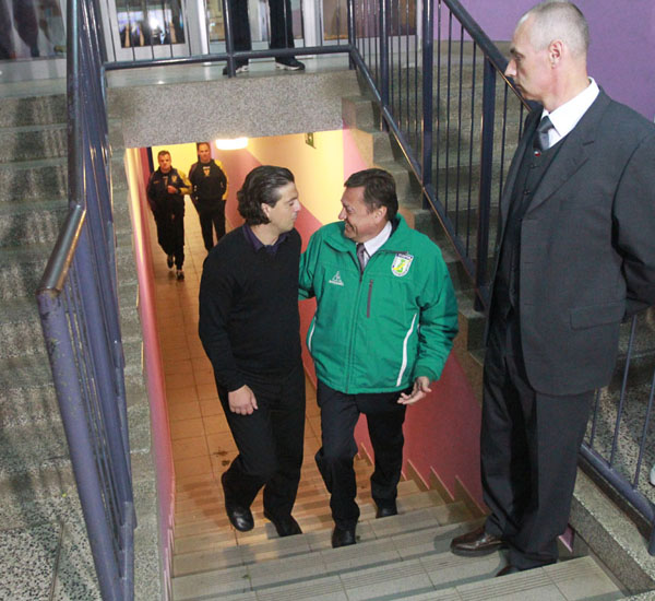 Zoran Janković je po tekmi šel pozdravit nogometaše Olimpije v slačilnico, ven pa sta prišla skupaj s športnim direktorjem NK Maribora Zlatkom Zahovićem.