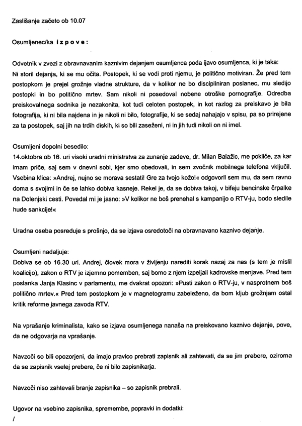 Faksimile tretje strani policijskega zapisnika zaslišanja poslanca Andreja Magajne (za povečavo klikni na sliko).