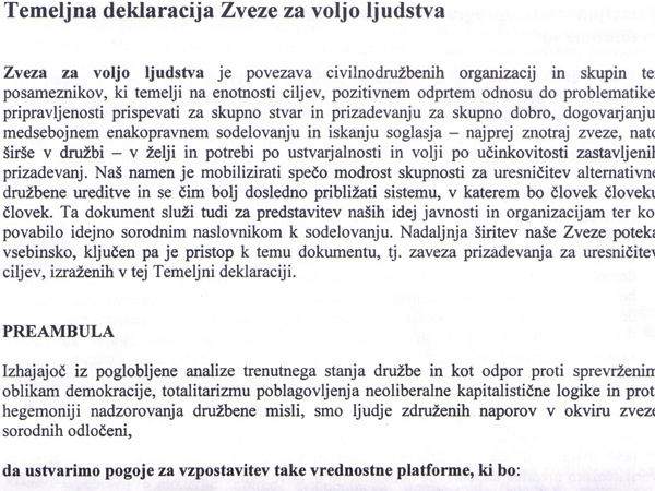 ... Zveza za voljo ljudstva ima tudi že svojo deklaracijo in sprejeta natančna programska izhodišča (za povečavo klikni na sliko).