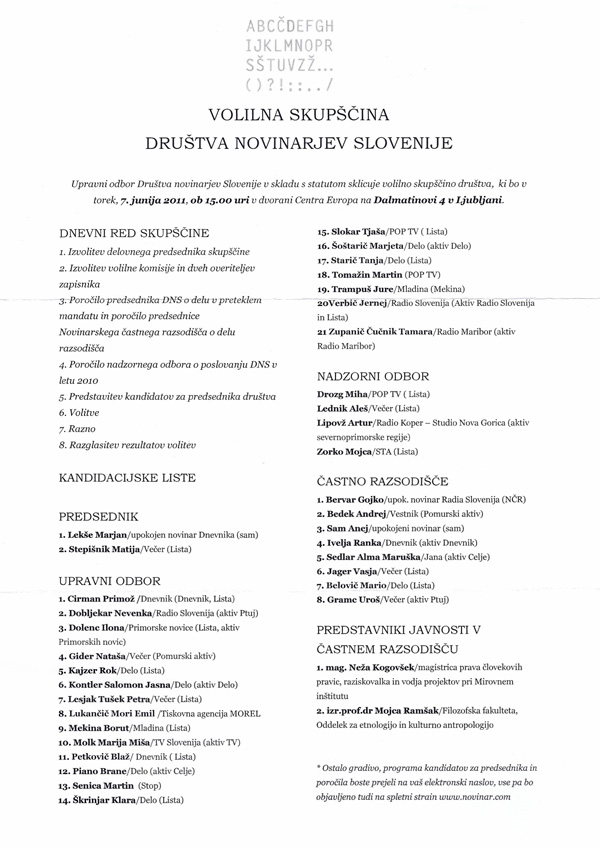 Volitve so v torek: celotna kandidatna lista za funkcije v Društvu novinarjev Slovenije (za povečavo klikni na sliko).