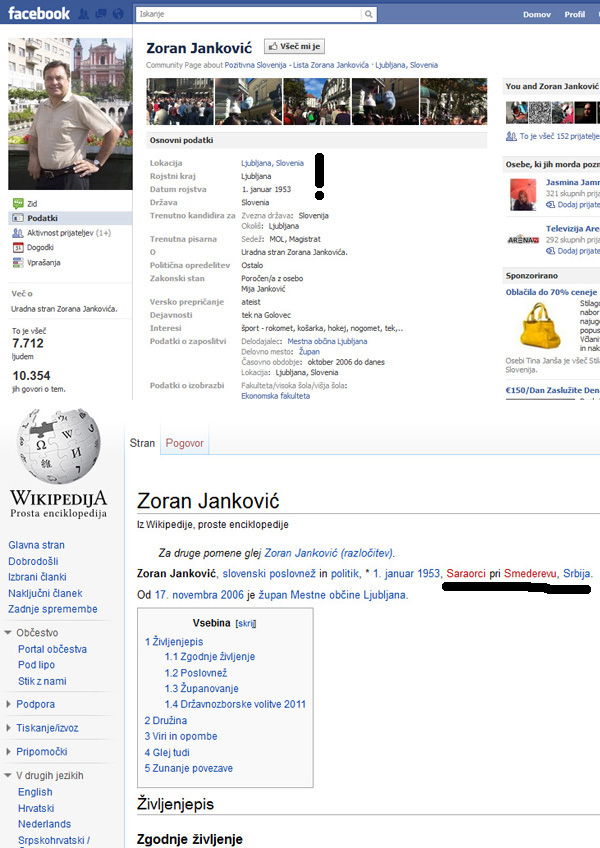 Požar tudi ti delaš napake. Janković ni sam popravil podatke na svoji spletni strani, ker je računalniško nepismen. Nikoli ni znal računalnika uporabljati niti ga ne bo znal. To je čista resnica, ki jo lahko preveriš pri njemu. Drugače sem pa mnenja, da ne more biti en (zelo ponosen) Srbjanc predsednik vlade R Slovenije in upam da velika večina Slovencev misli isto.