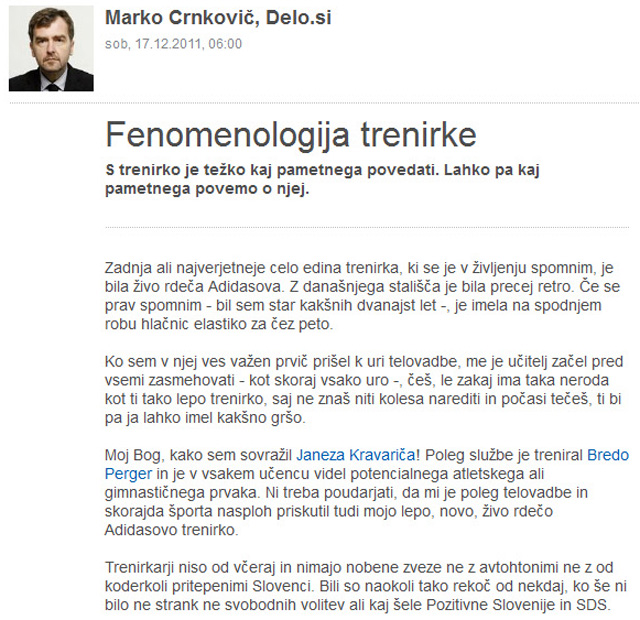 Res je bilo to, trenirke, popolnoma nepotrebno in neokusno...NE PA SOVRAŽNI GOVOR bučkoti, po volitvah so taki komentarji ODVEČ. Gledal sem HANŽKA NA TV, pa ta človek je za penzion ali pa šolo govora. Sicer pa trenirke so...resnica kot burke drugje. Trenirke gredo v bife ali avtosejem v Lj. žene pa doma kuhajo kosilo.